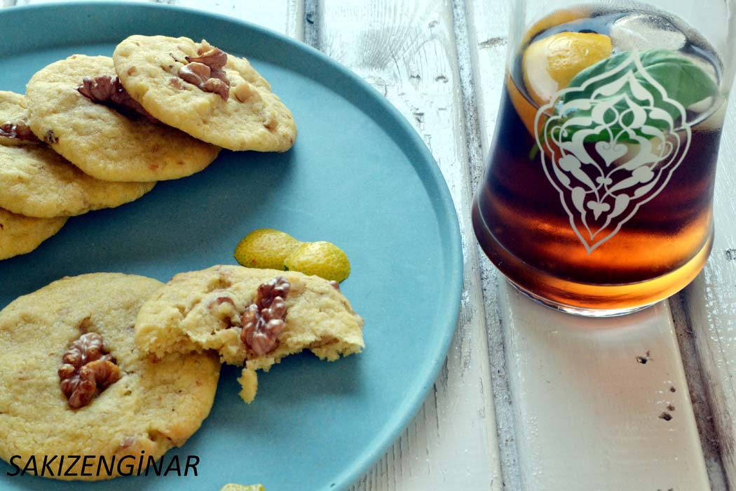 Mutfak tezgahını unlayın hamuru silindir şekline gelmesi için yuvarlayın.1 cm. dilimleri bıçakla kesin. Yağlı kağıt serdiğiniz fırın tepsisine yerleştirin. Her bir kurabiyenin üzerine ceviz yerleştirin.