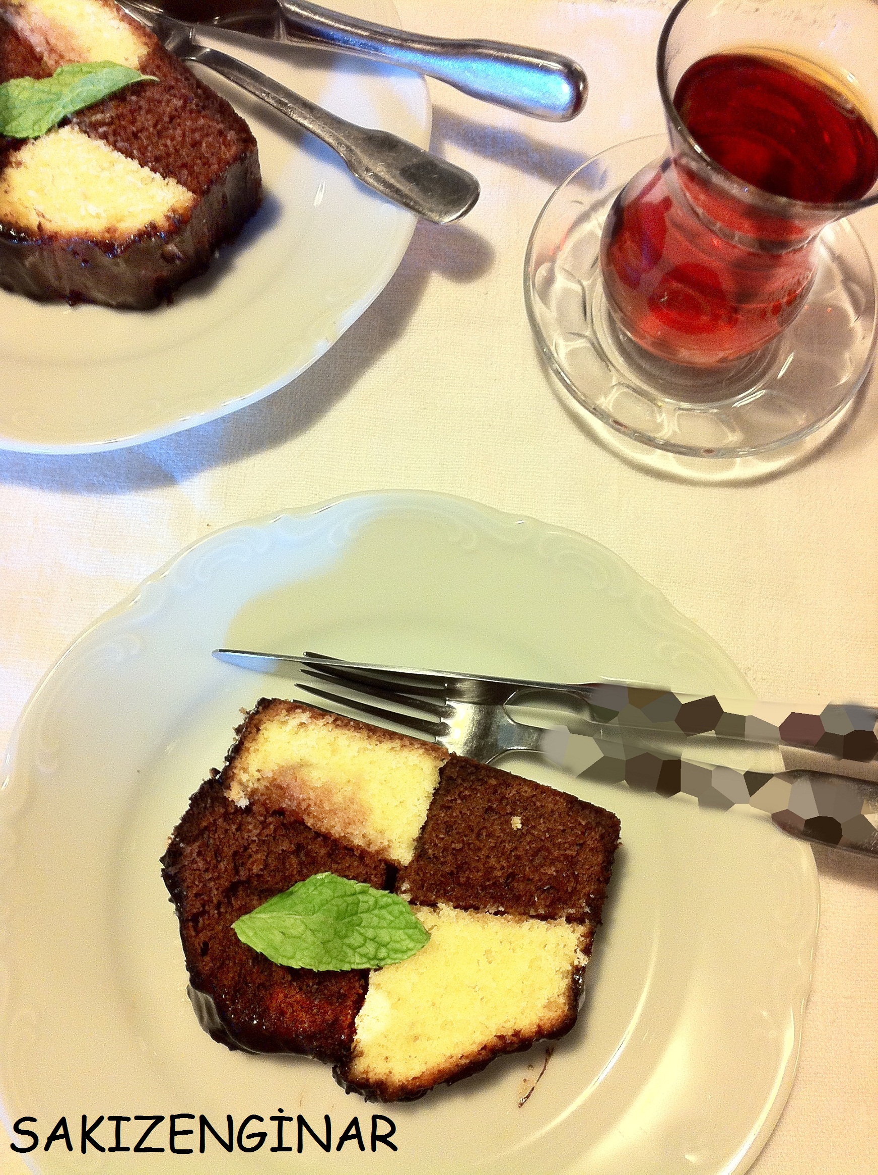 Hazırladığınız kek hamurunun yarısını bir kalıba boşaltın. Diğer yarısına kakaoyu ekleyip çırpın. Kakaolu hamuru da kalıbına aktarın. Önceden ısıtılmış 180 drece fırında kekleri 35-40 dakika pişirin.