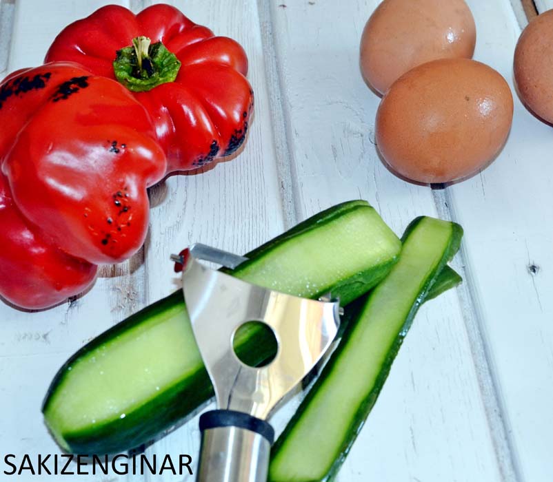 Salatalıkları kabuk soyacağı ile ince ince uzunlamasına dilimleyin