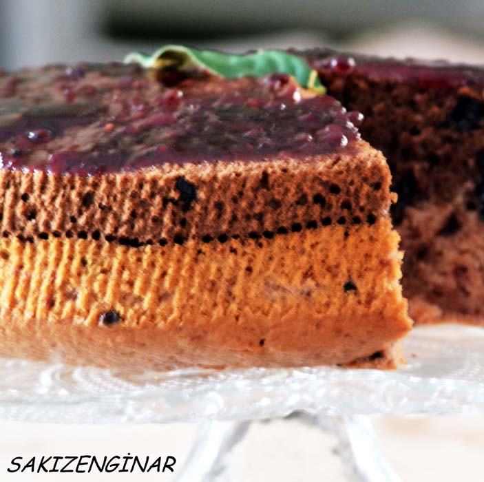 Soğuduktan sonra kalan vişne sosunu kekin üzerine yayın.