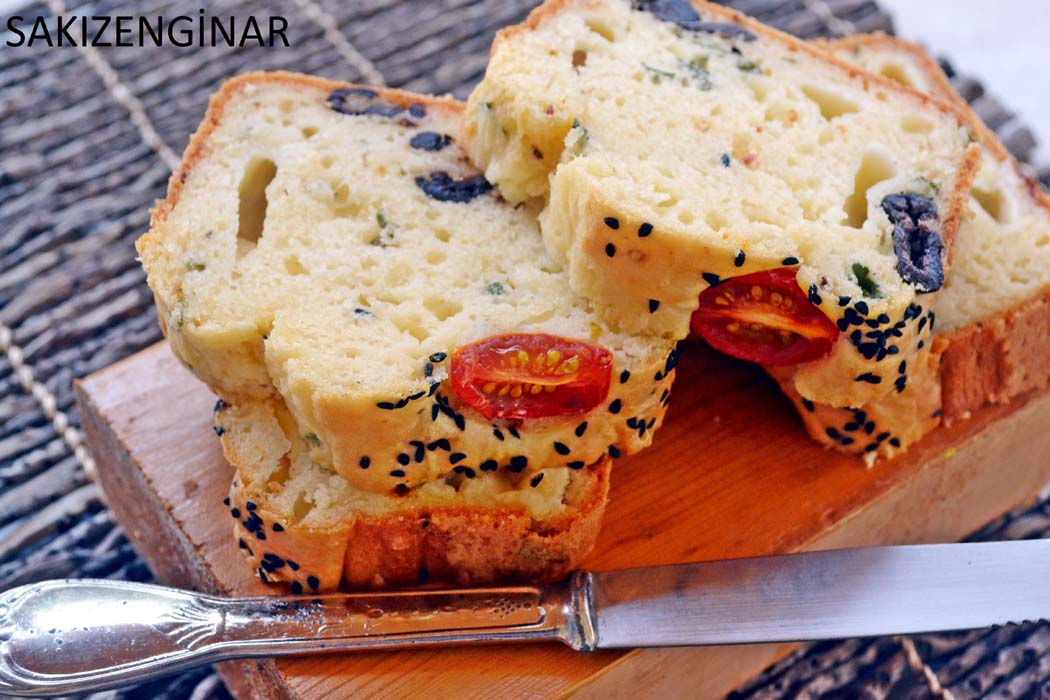 Yağlanmış kek kalıbına boşaltın. Üzerine ortadan ikiye bölünmüş cherry domatesleri yerleştirip çörek otu serpin.